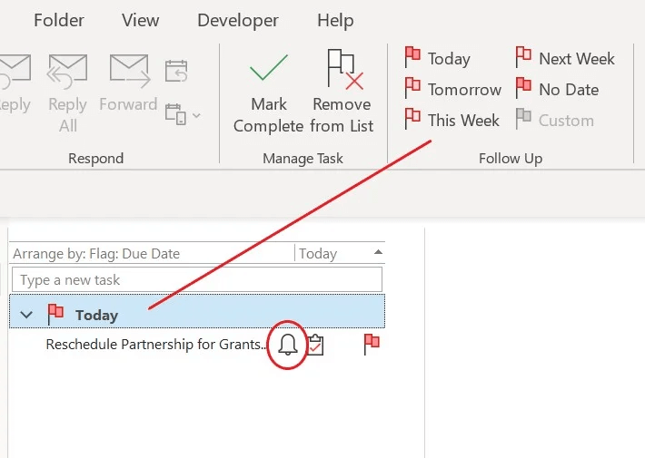 You can quickly change this by clicking the flag header, which will display the contextual Follow Up group on the ribbon. The flag isn’t a reminder — it’s an effective way to organise your tasks.